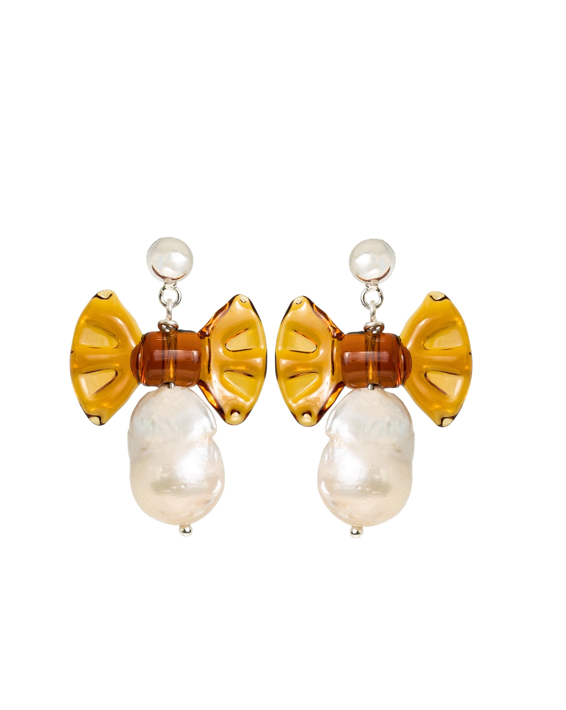 Handmade in freshwater pearls, and lampwork glass and sterling silver.