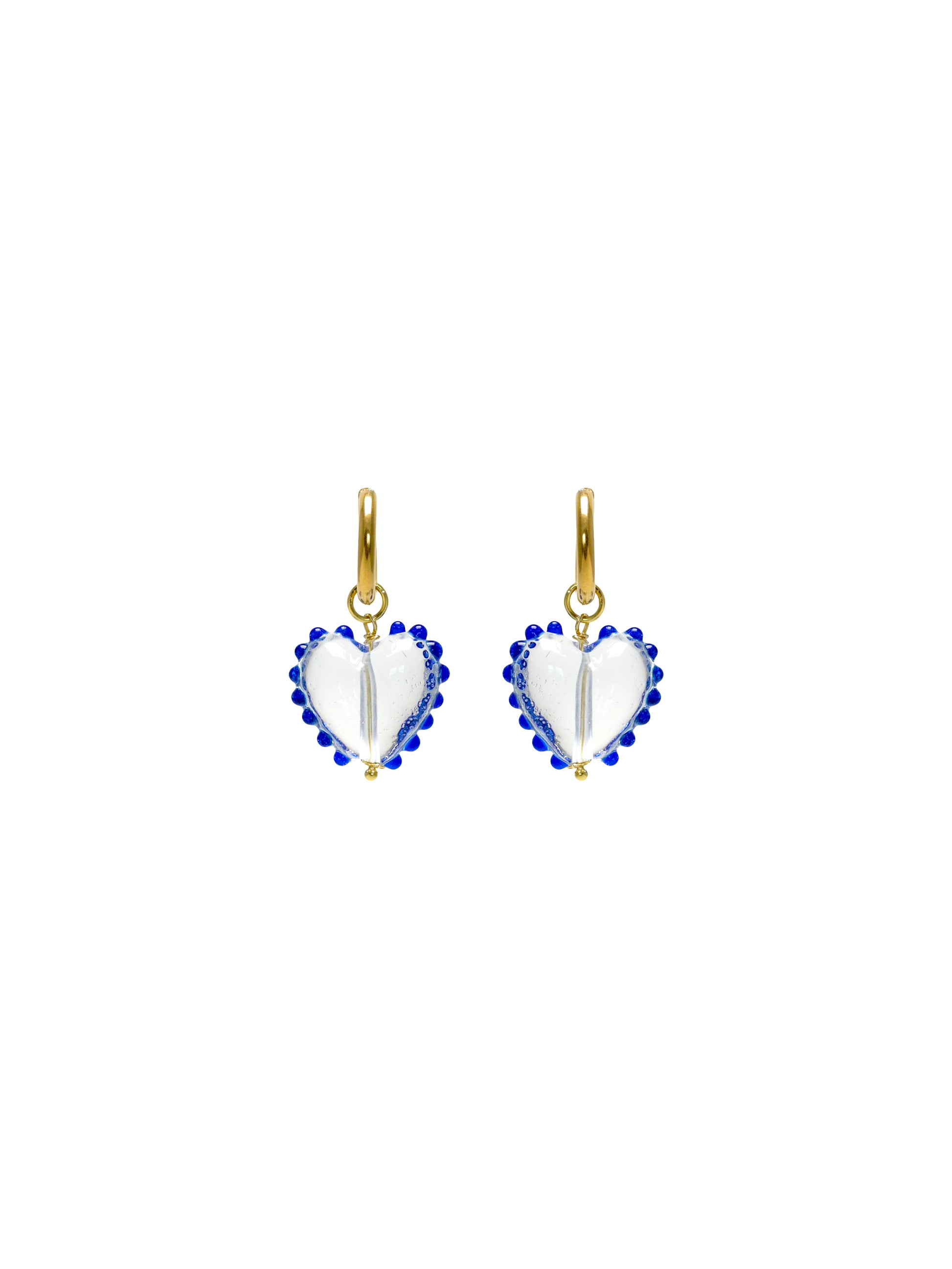 Stainless Steel and lampwork glass in clear with deep blue dots on the sides.