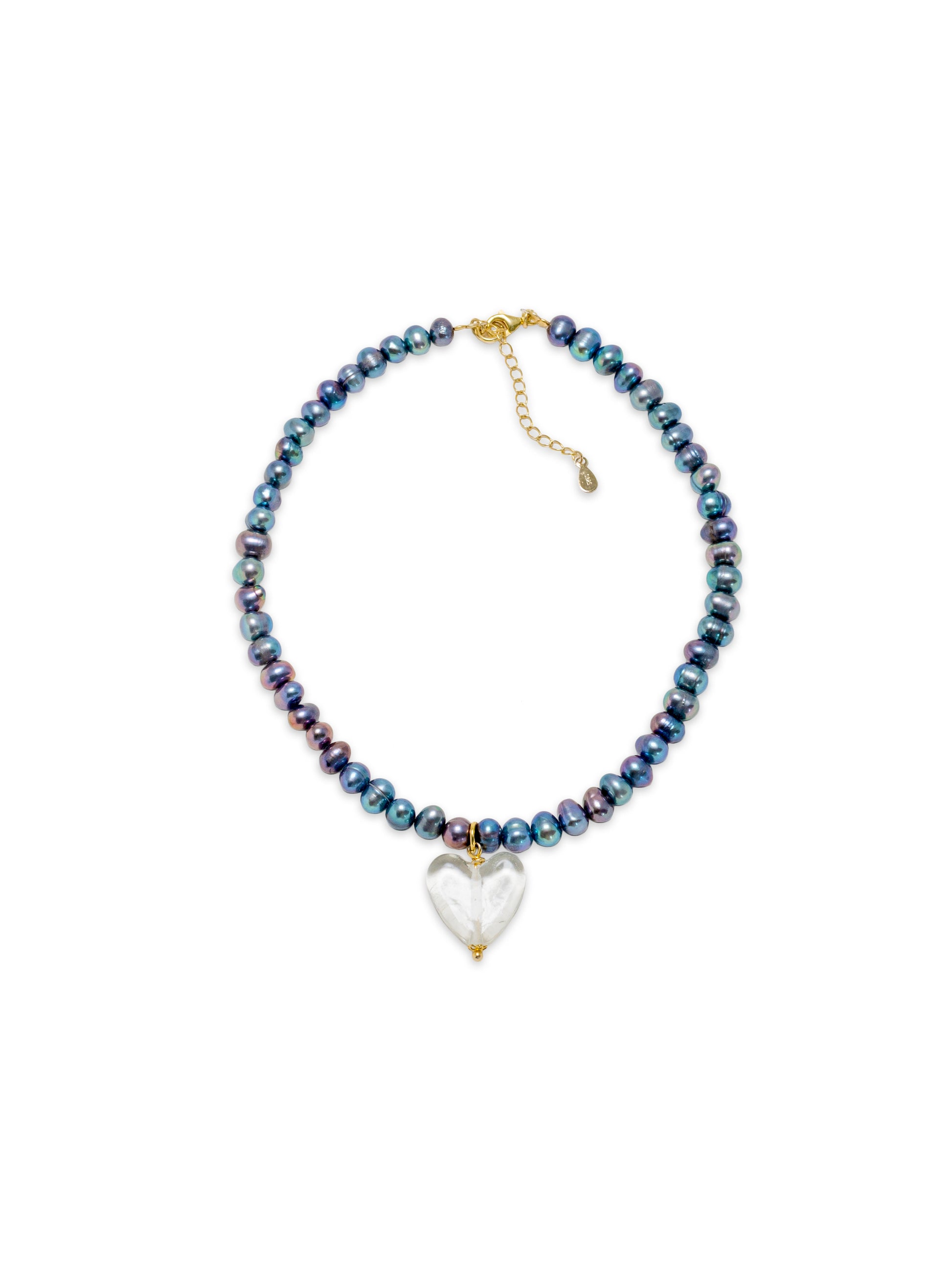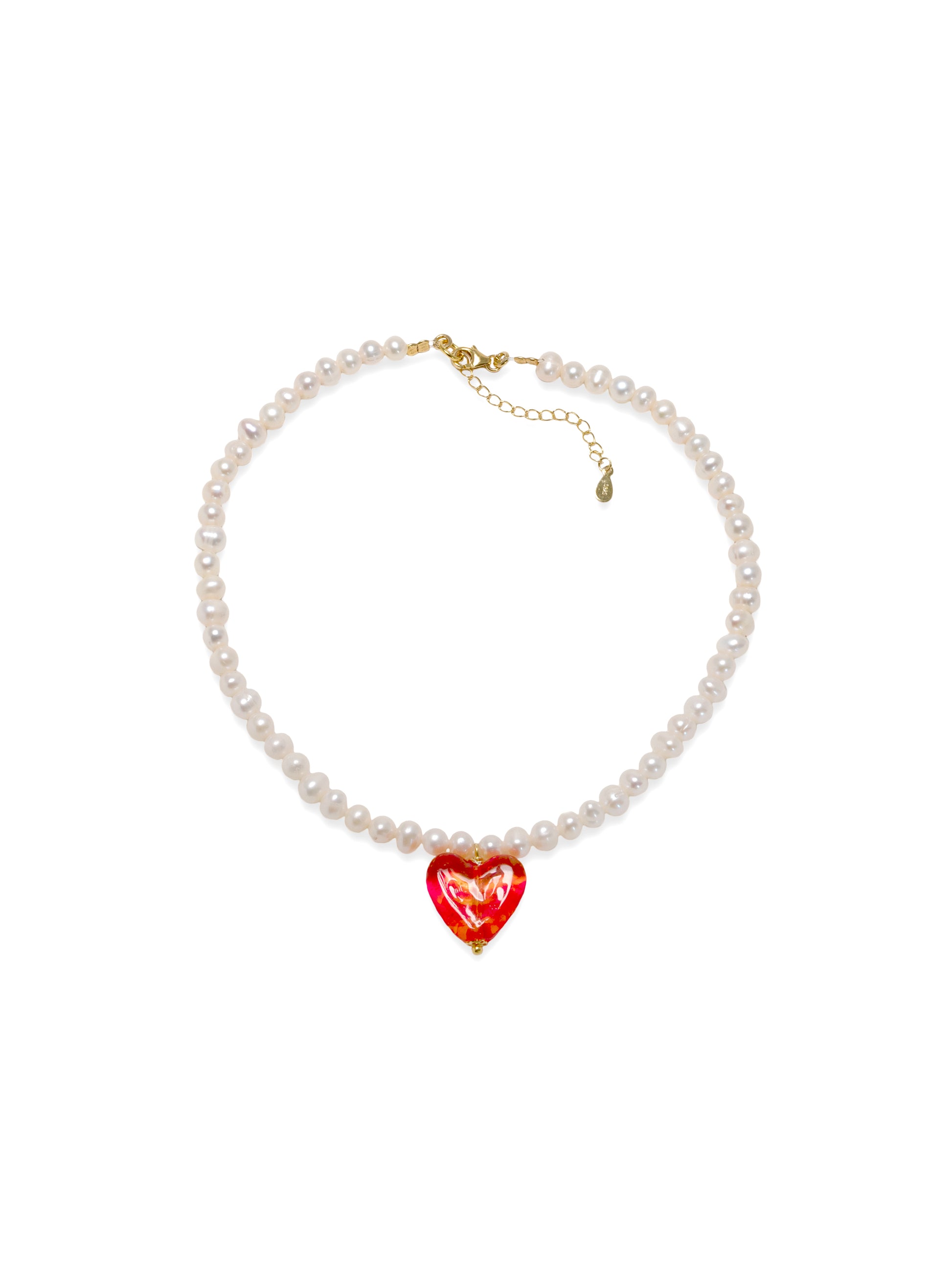 Freshwater pearls. Lampwork handmade marbled heart. Plated 24k sterling silver fastenings and clasp.
