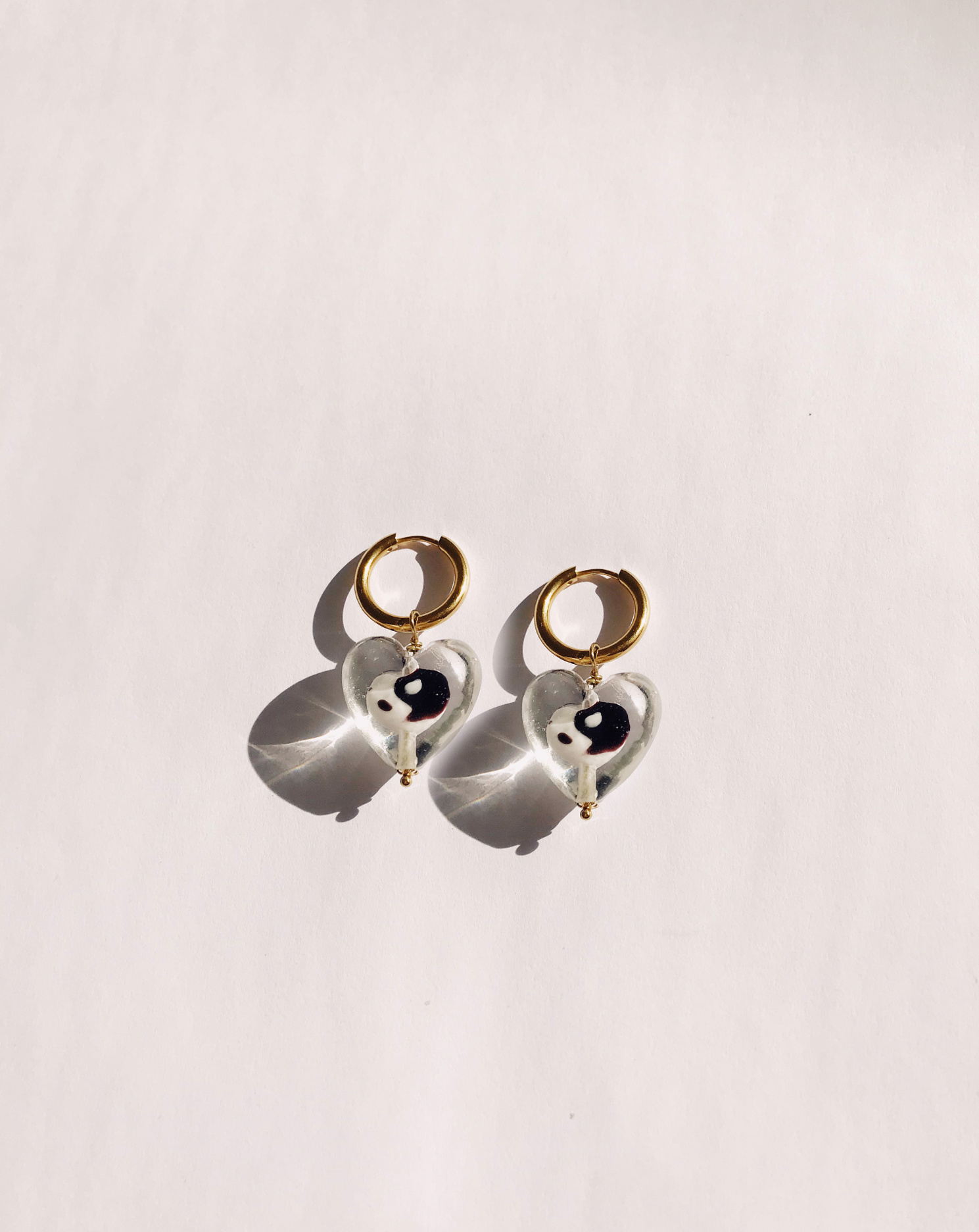 Heart shaped bead is 100% handmade in glass. You can see through it, and find a glass yin yang caringly placed in the centre.