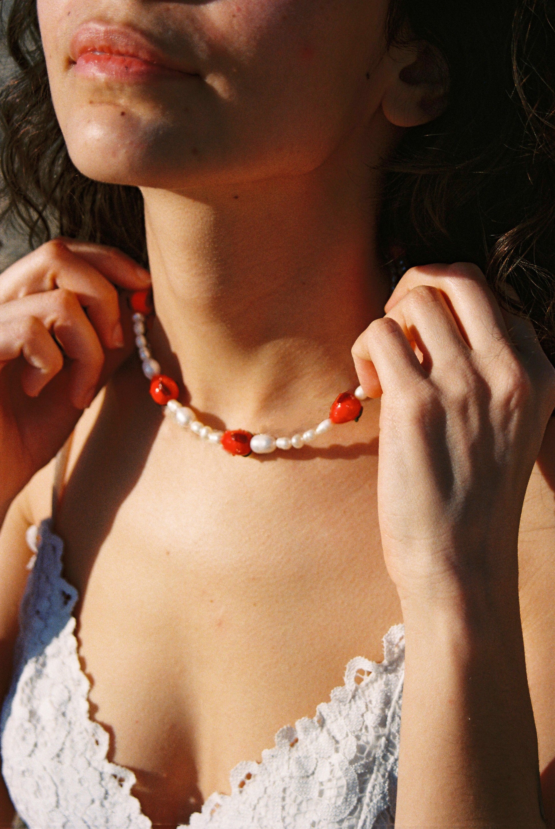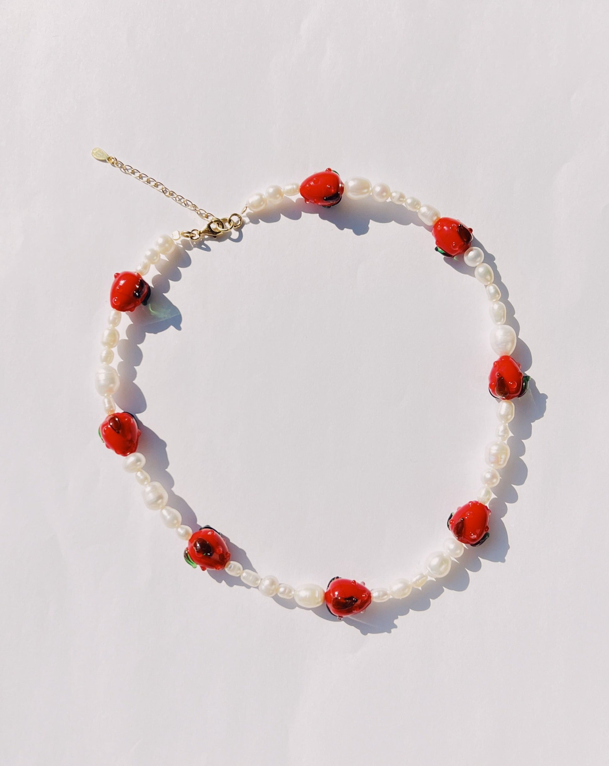 Strawberry Beaded Necklace: 41cm + 5cm adjustable chain approx.