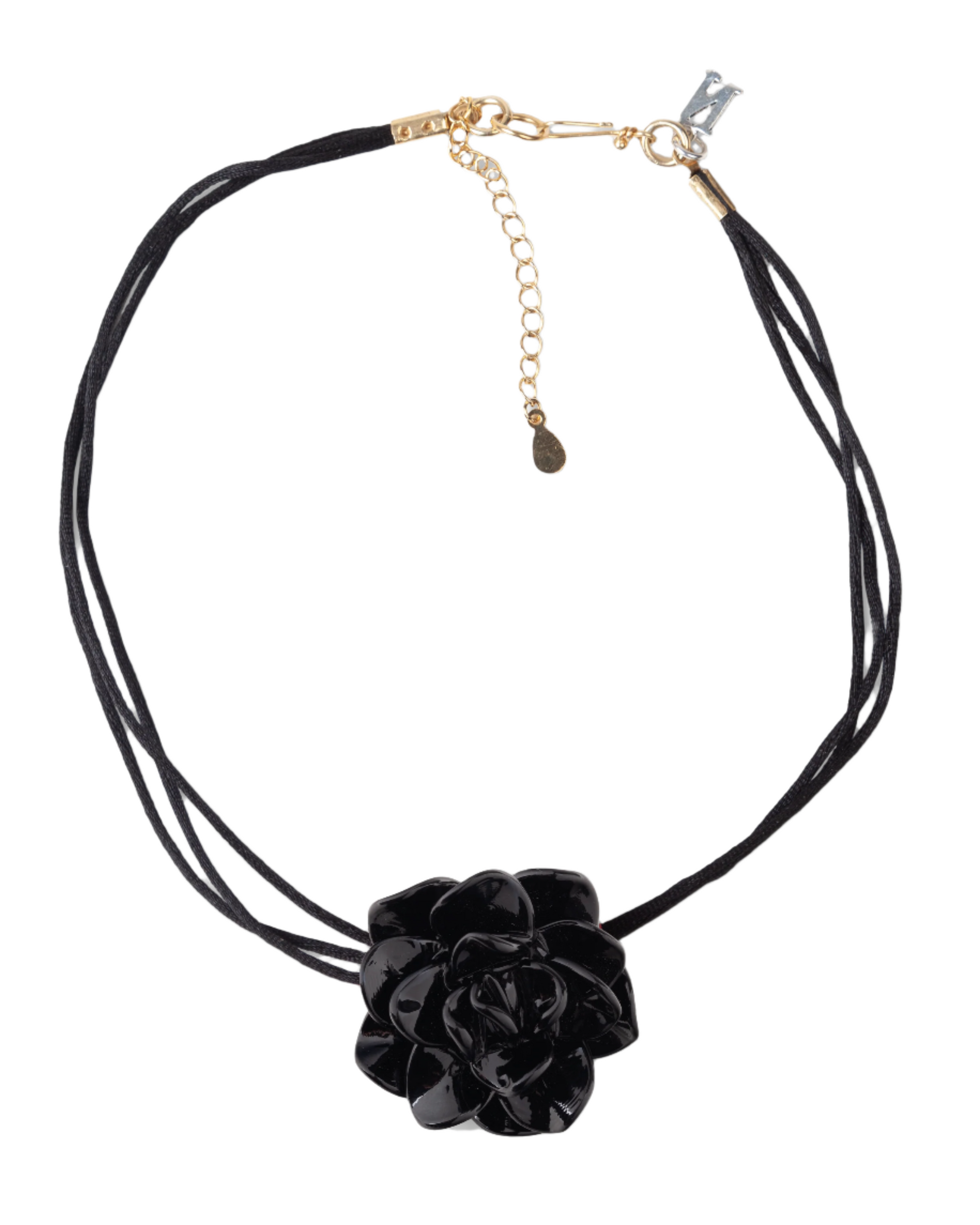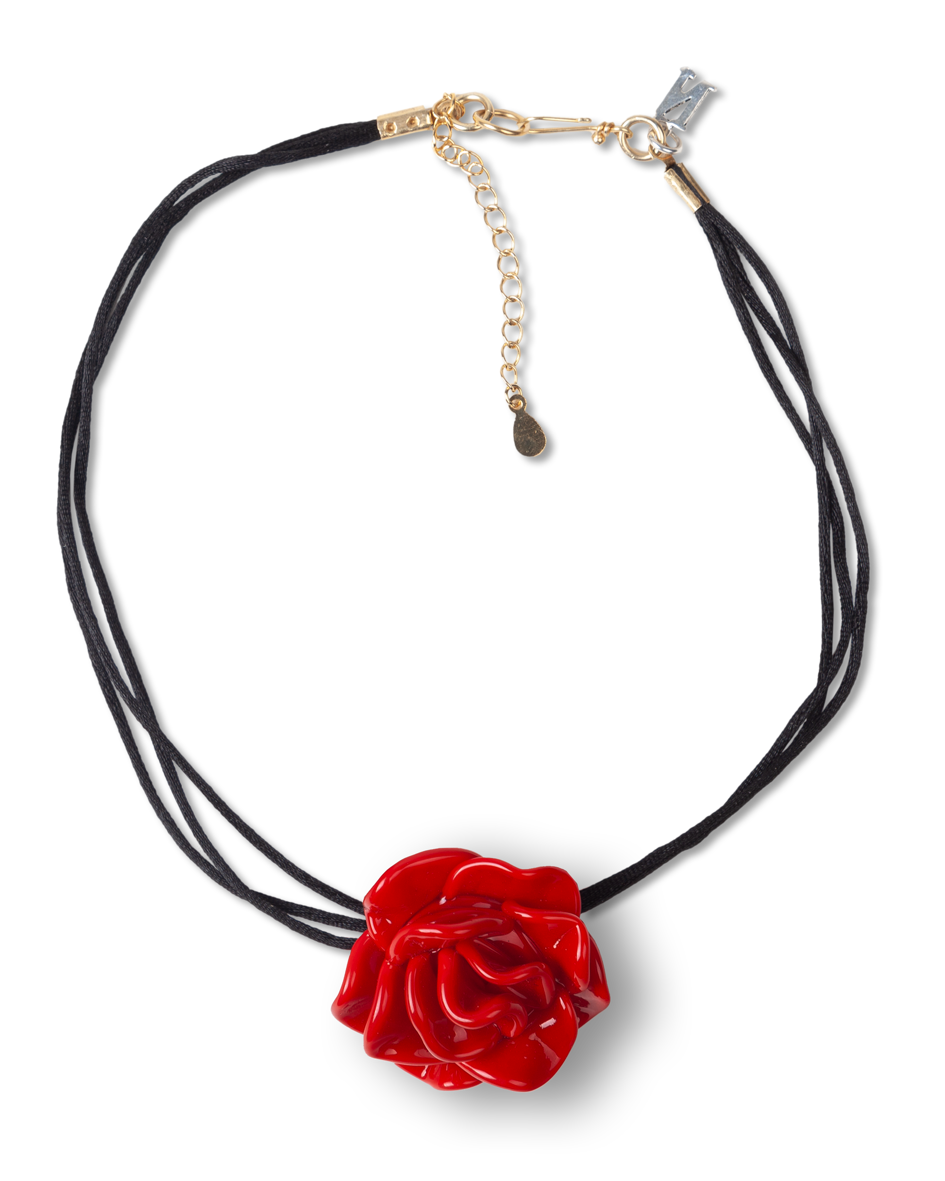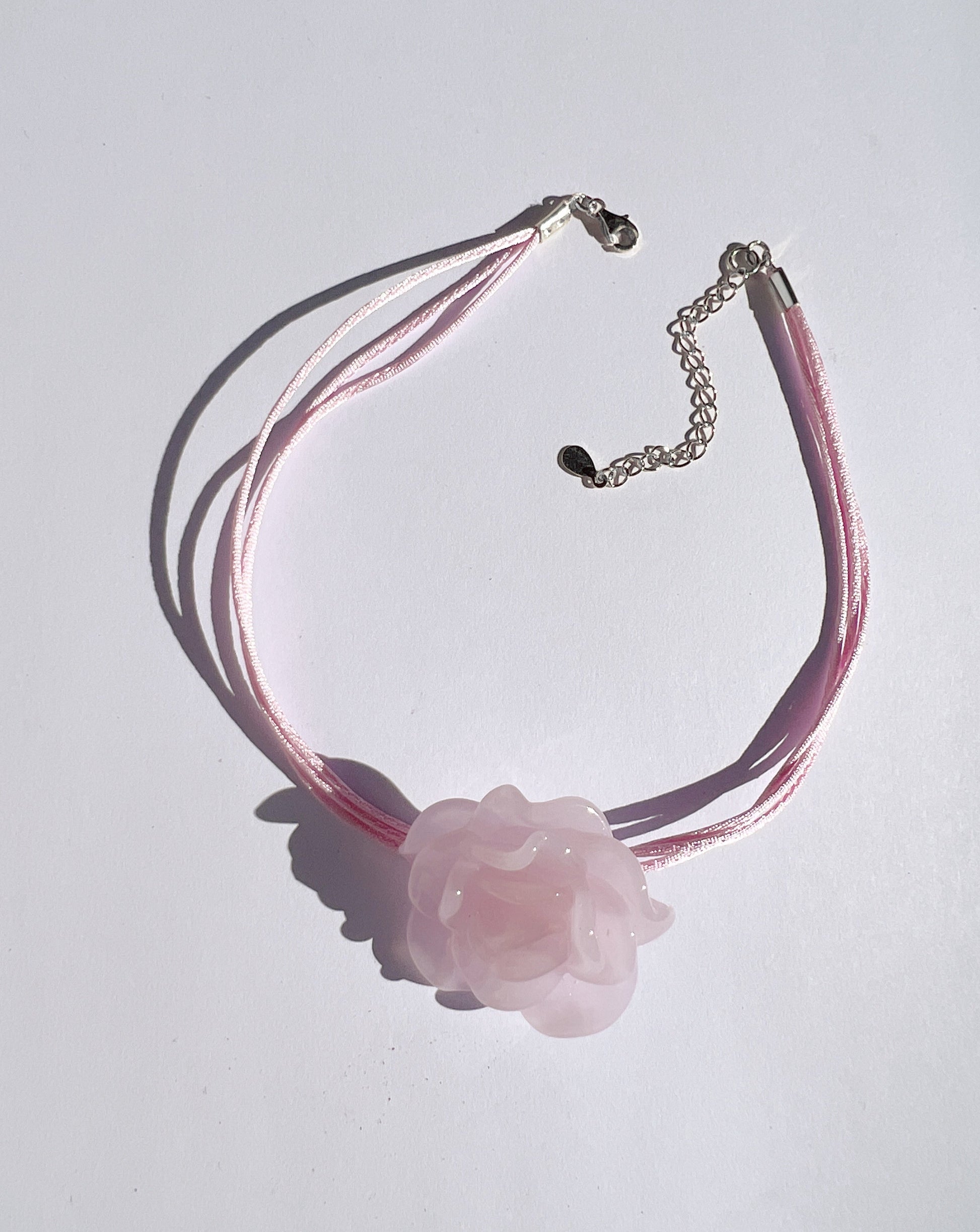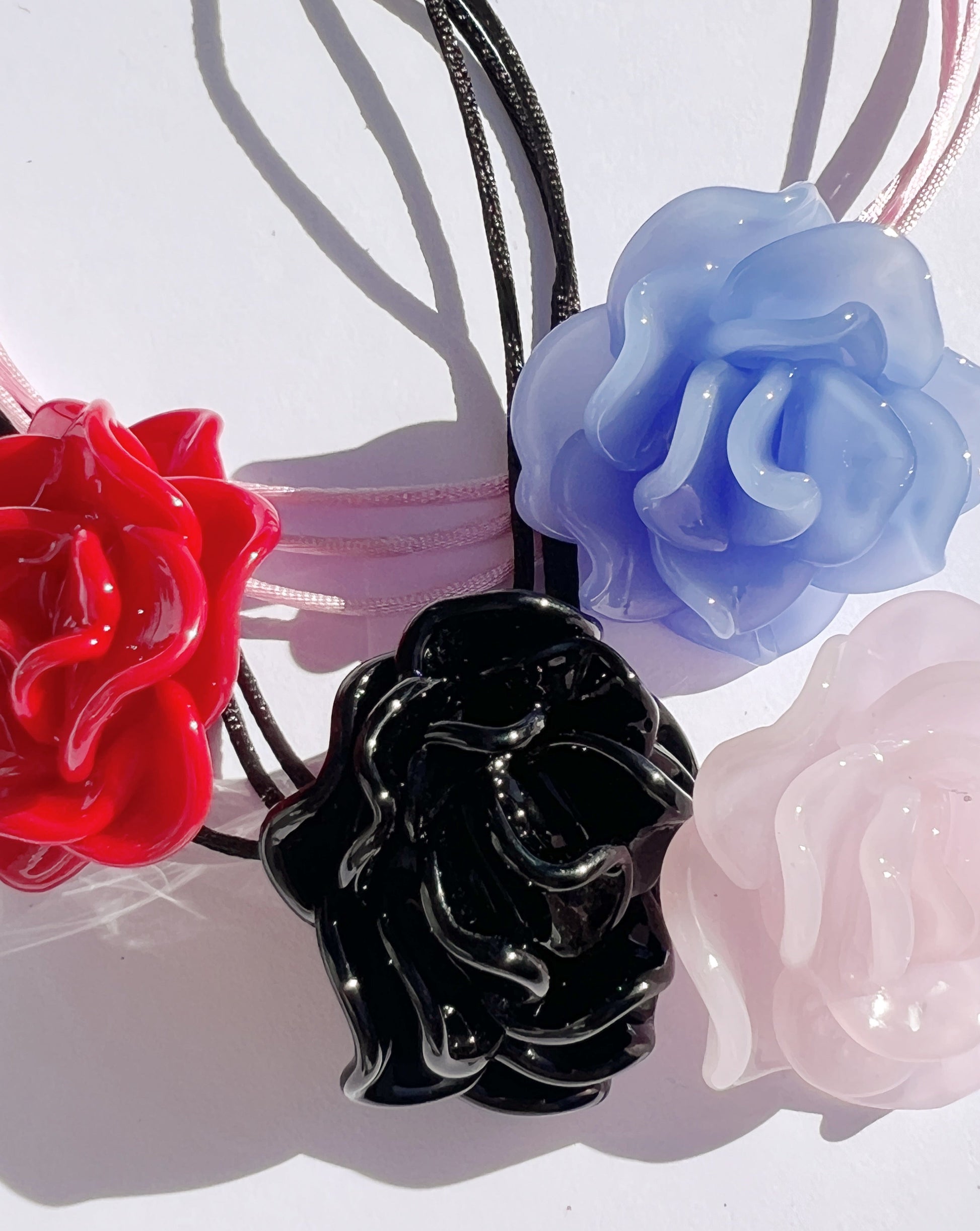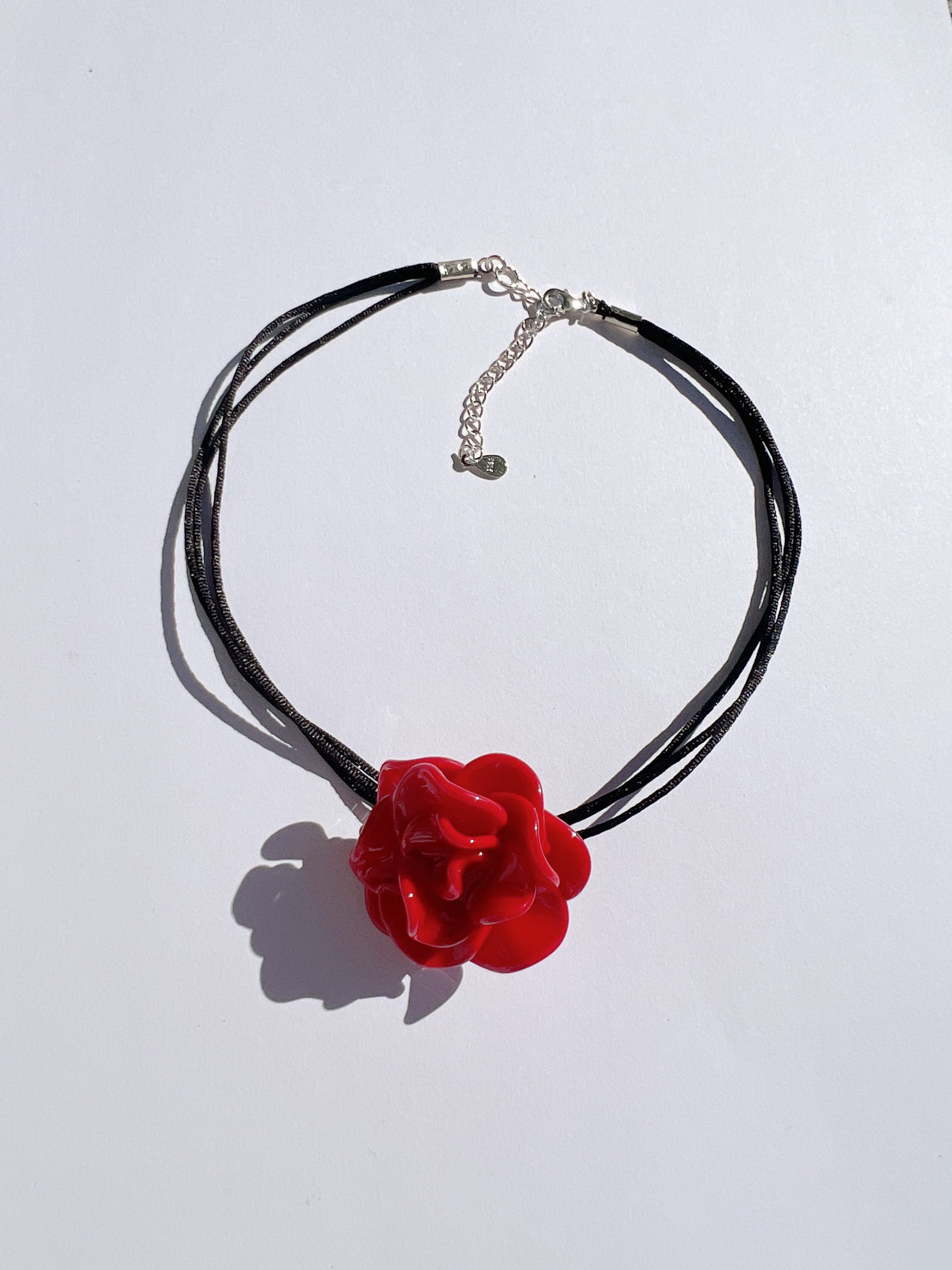 This necklace is handmade in glass. For the nature of it, every flower is different and no two are the identical same.