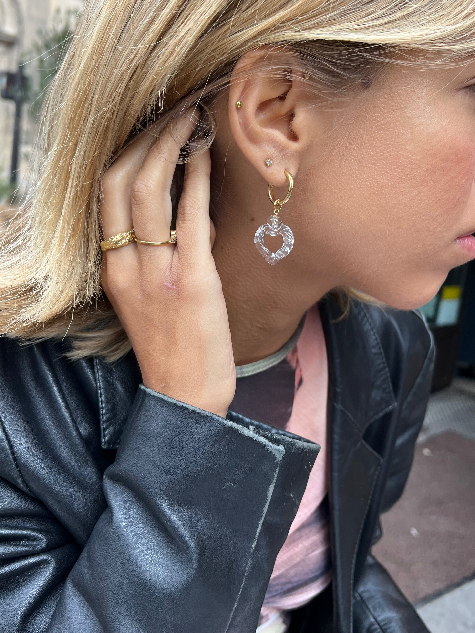 Lampwork glass charm. Antiallergic gold-plated metal hoop.