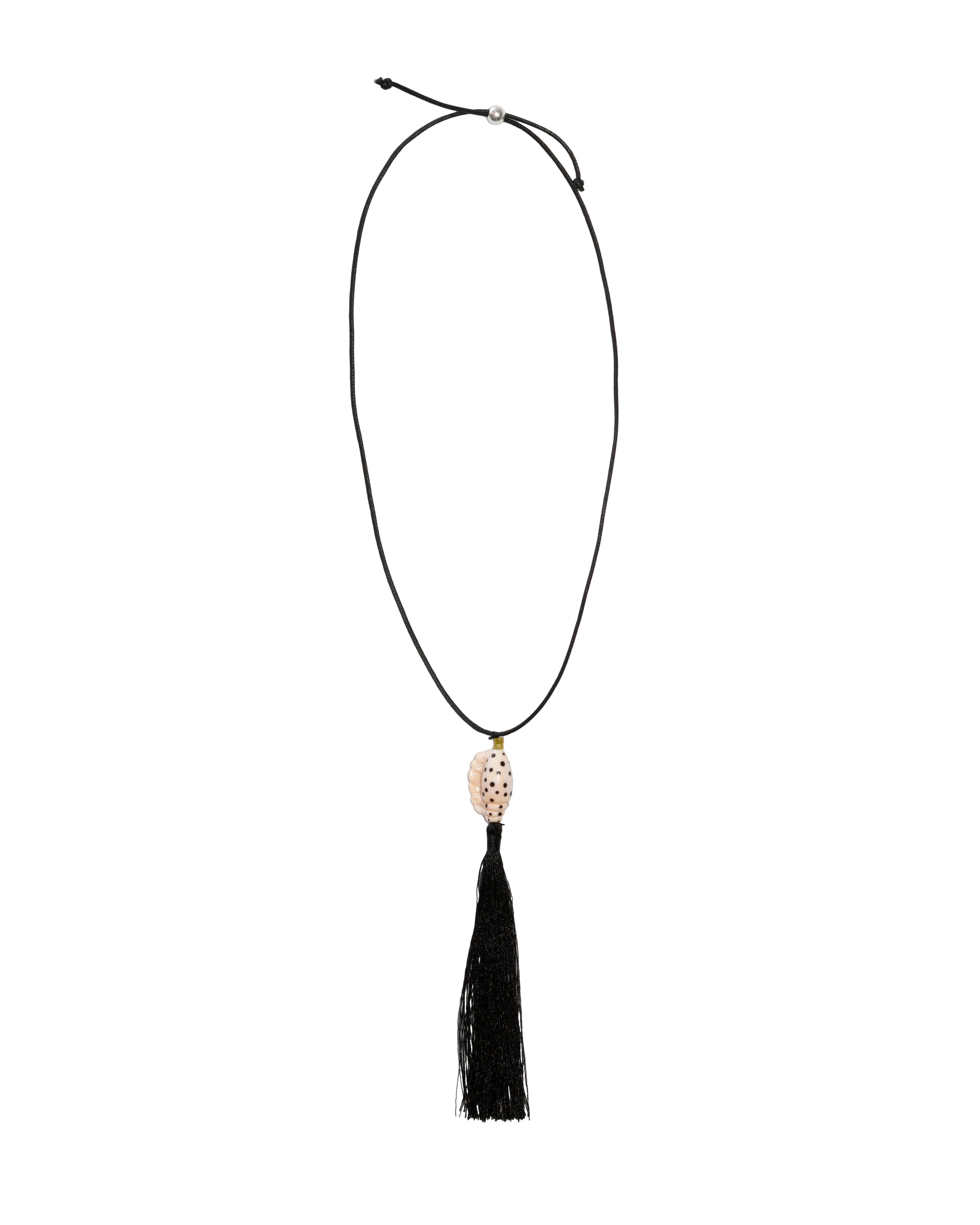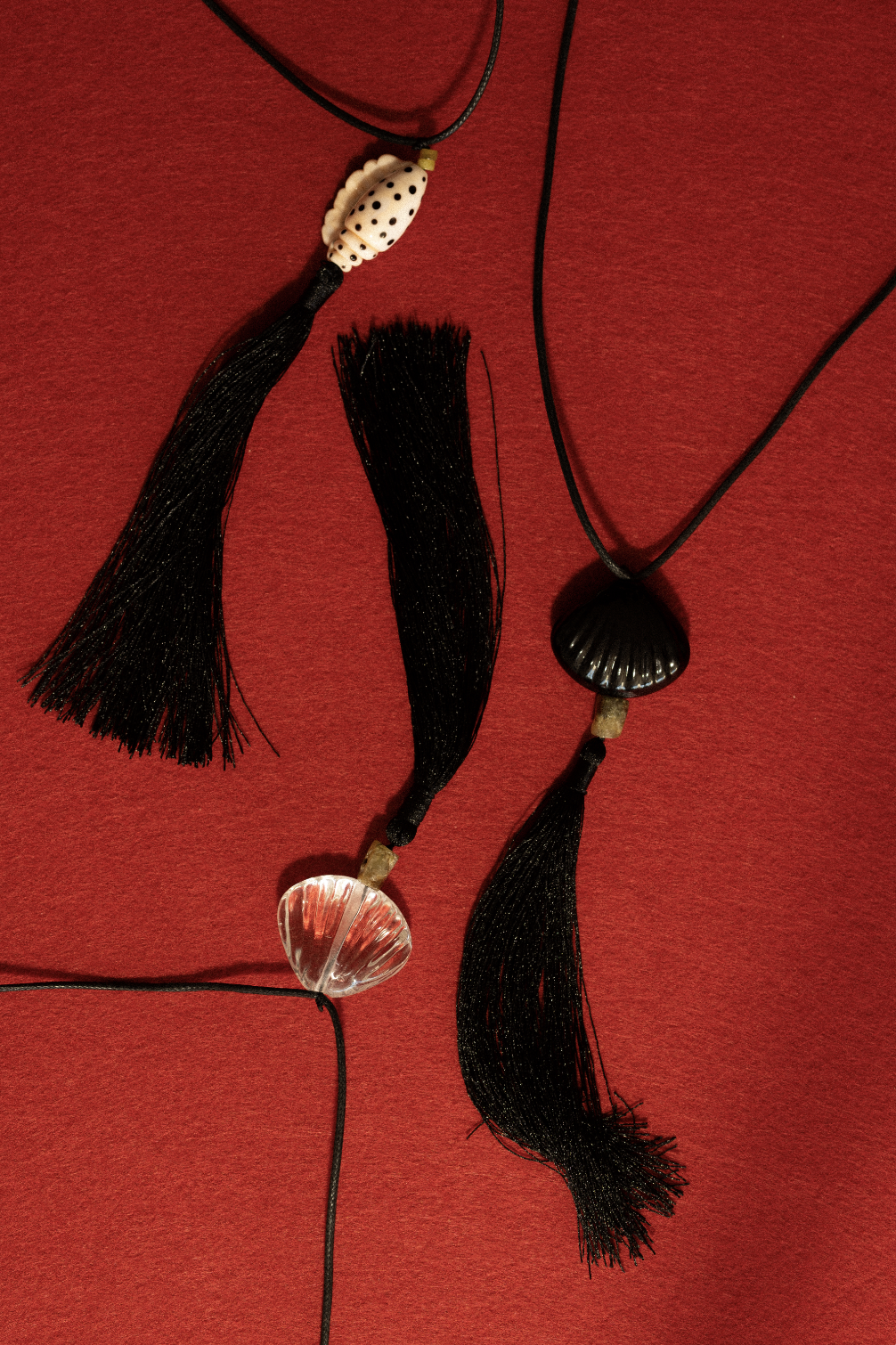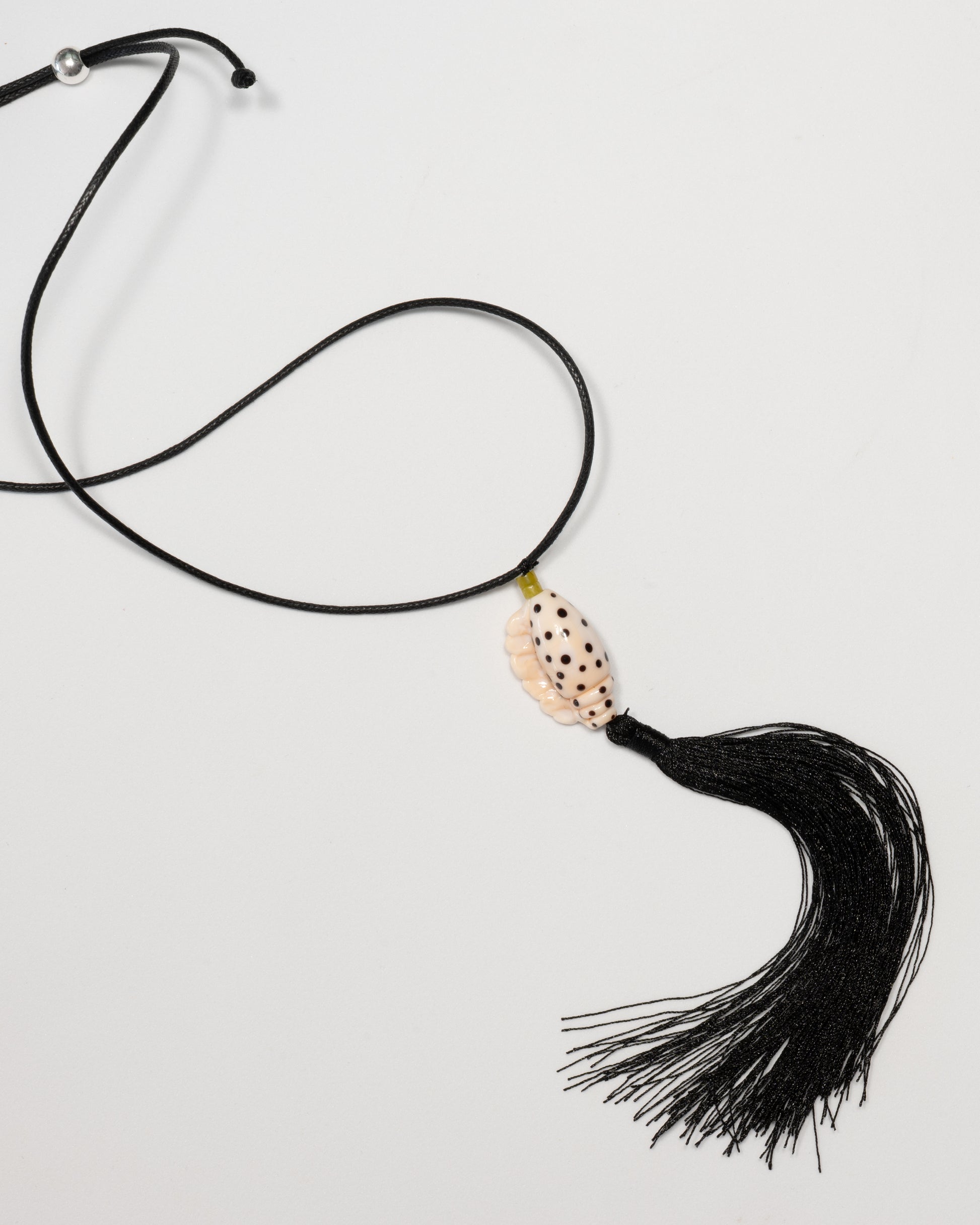 Necklace with a black tassel, jade and glass pendantPolysilk