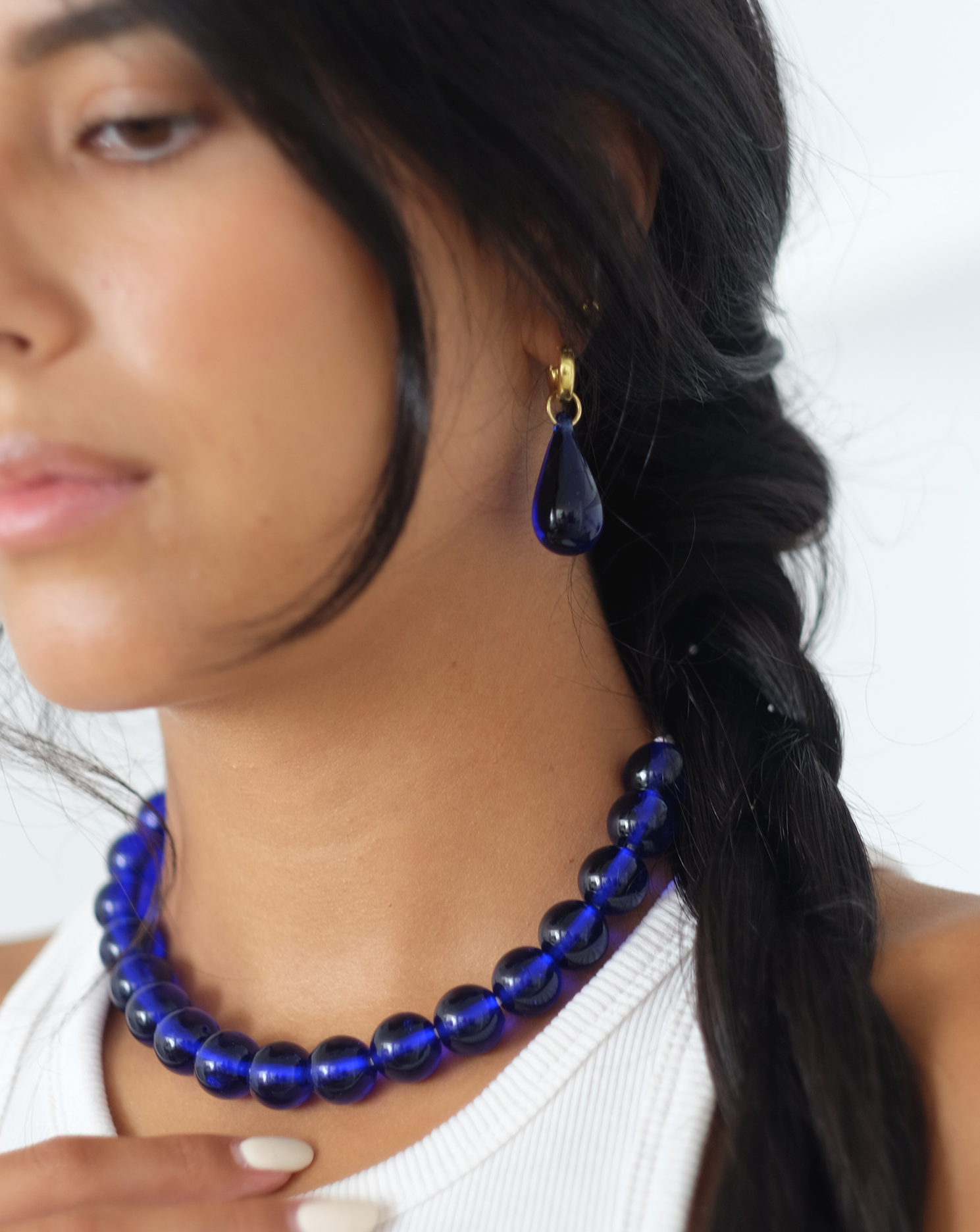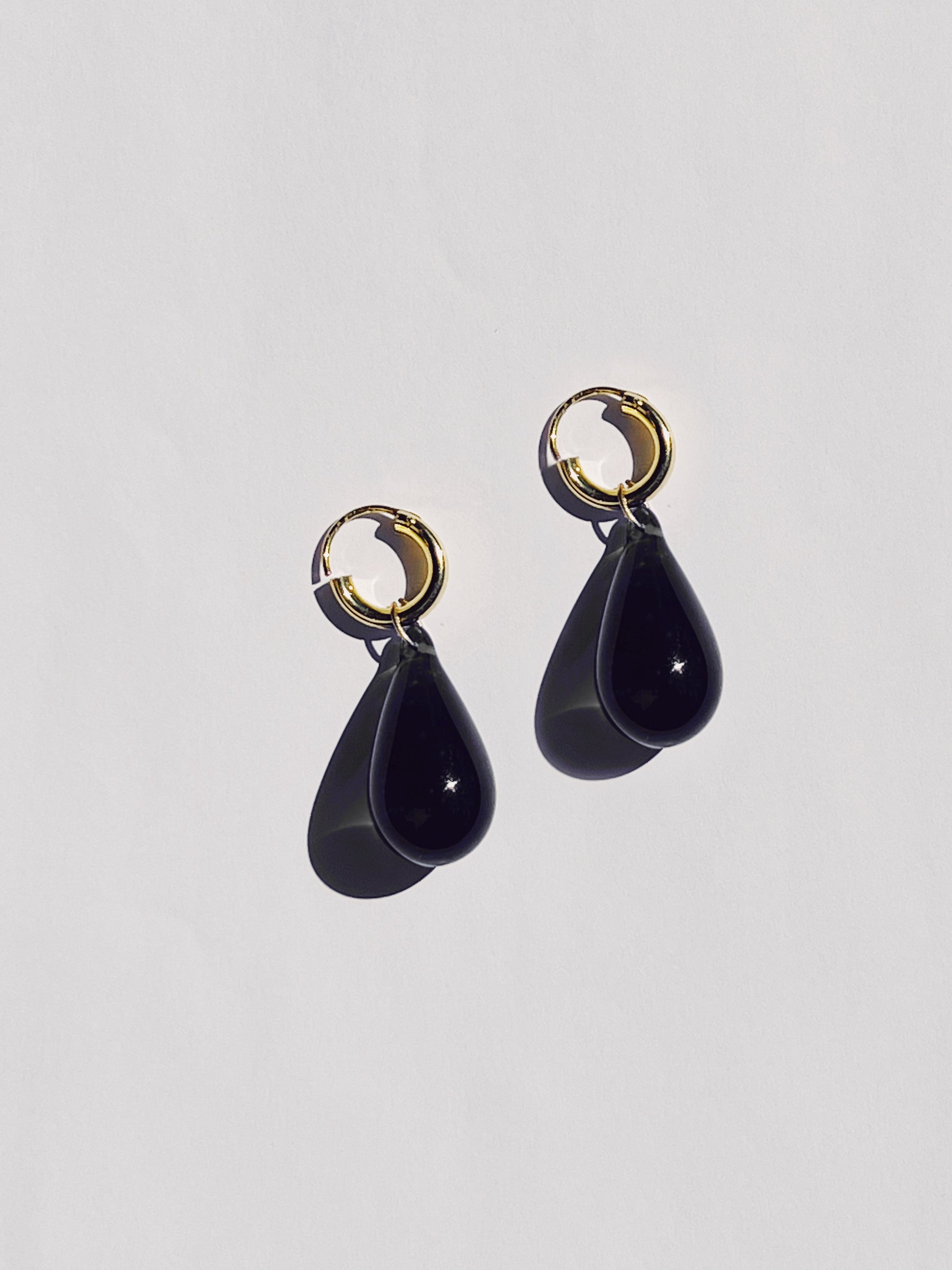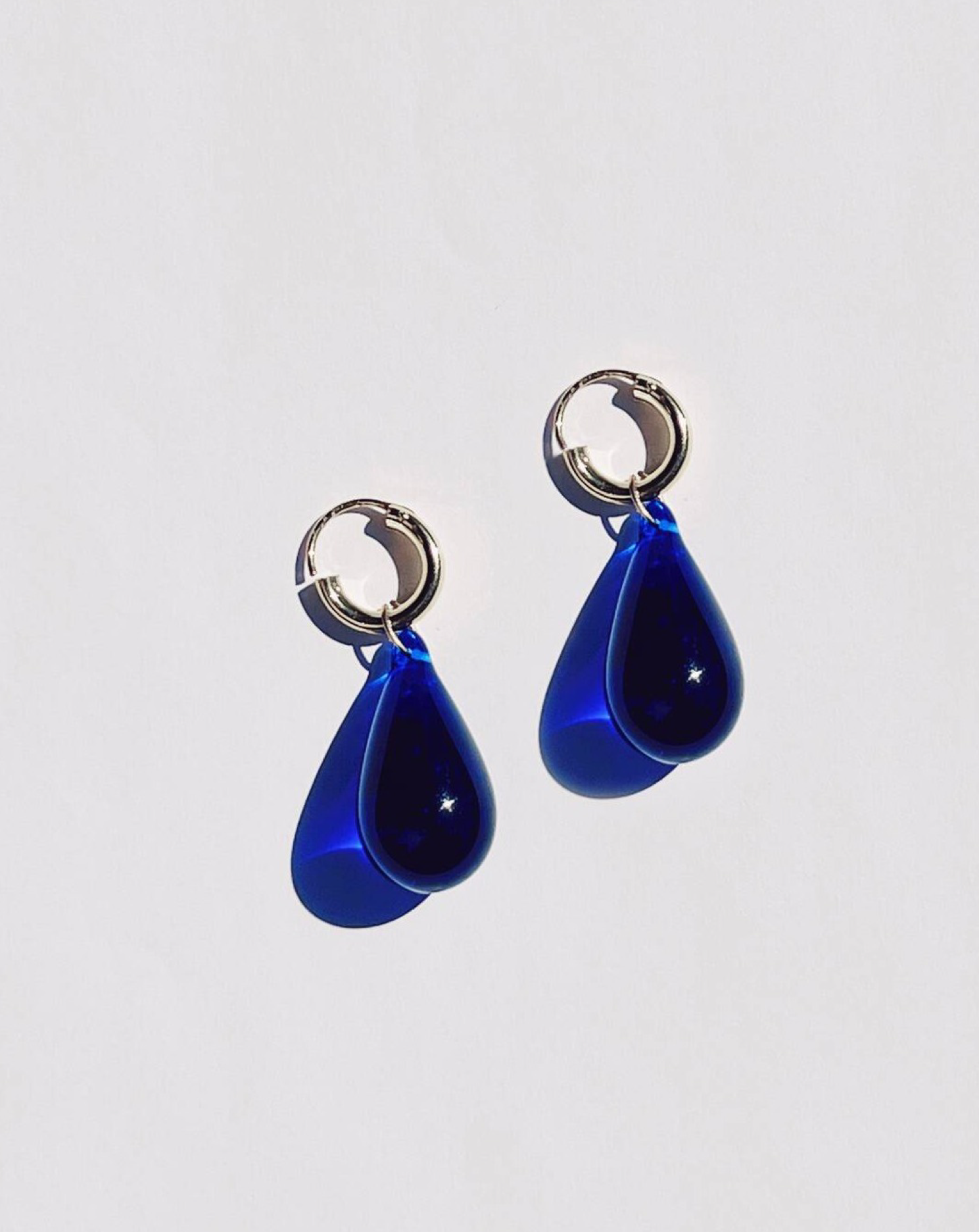 Handmade glass beads and sterling silver hoops and fastenings.
