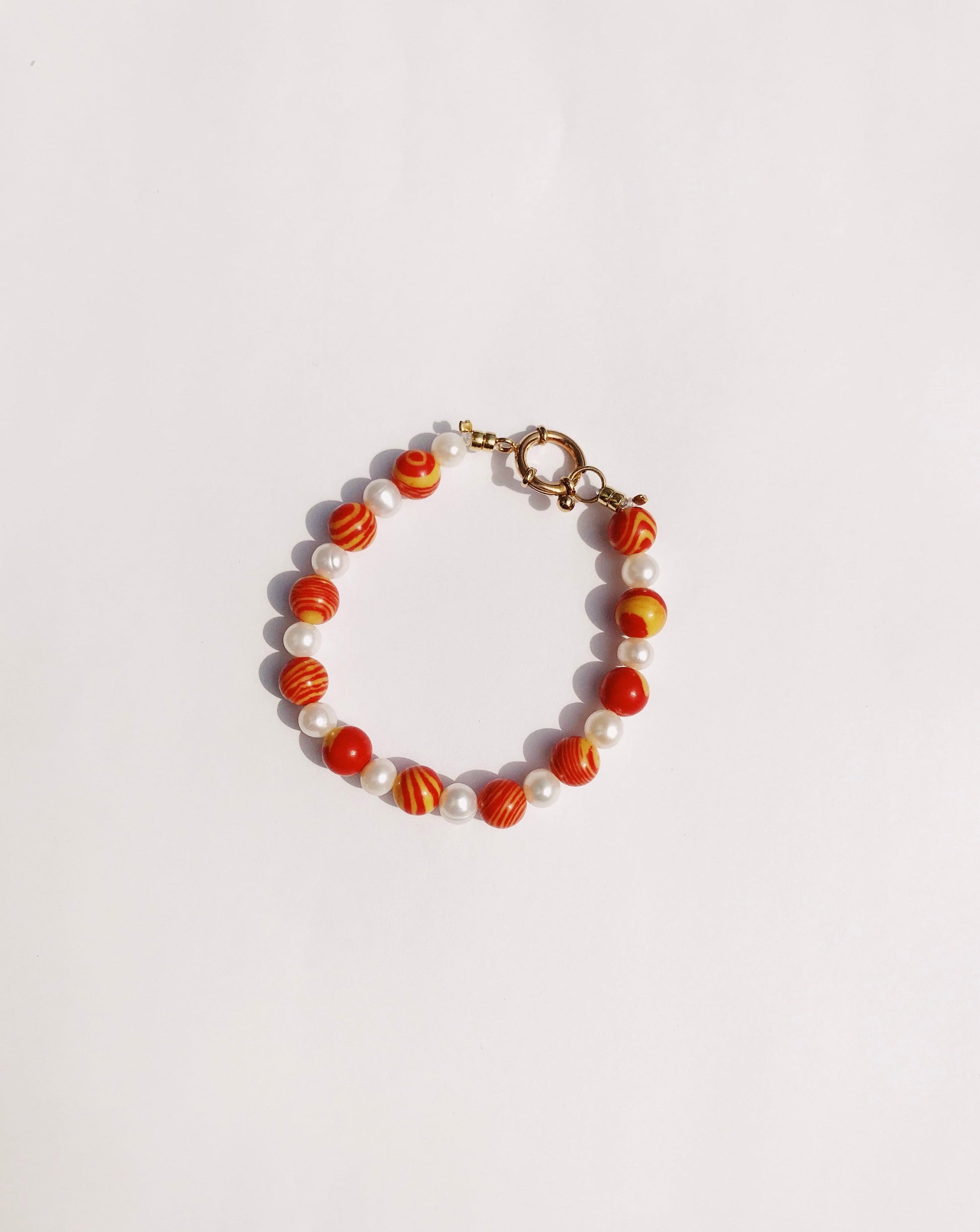 A fresh creation made with reconstituted stone, freshwater pearls and vermeil gold 14k.
