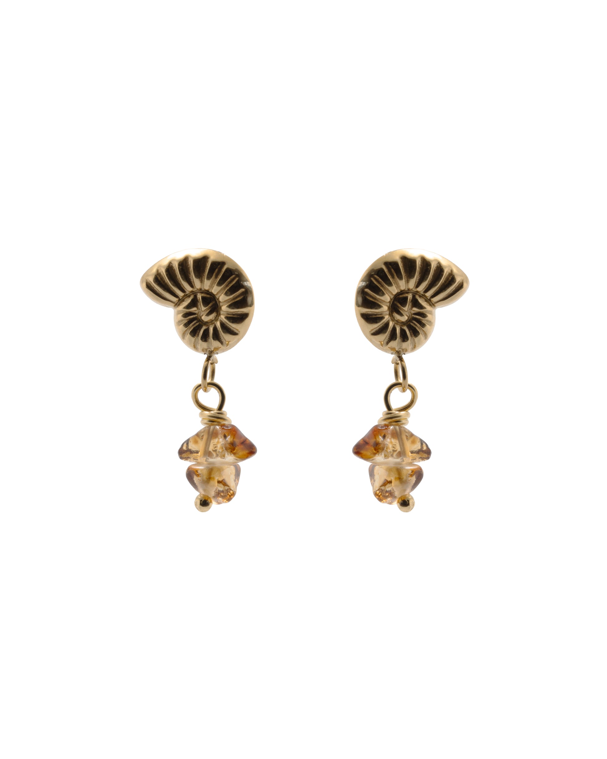 Nautilus Shell drop earrings in gold-plated stainless steel & natural amber