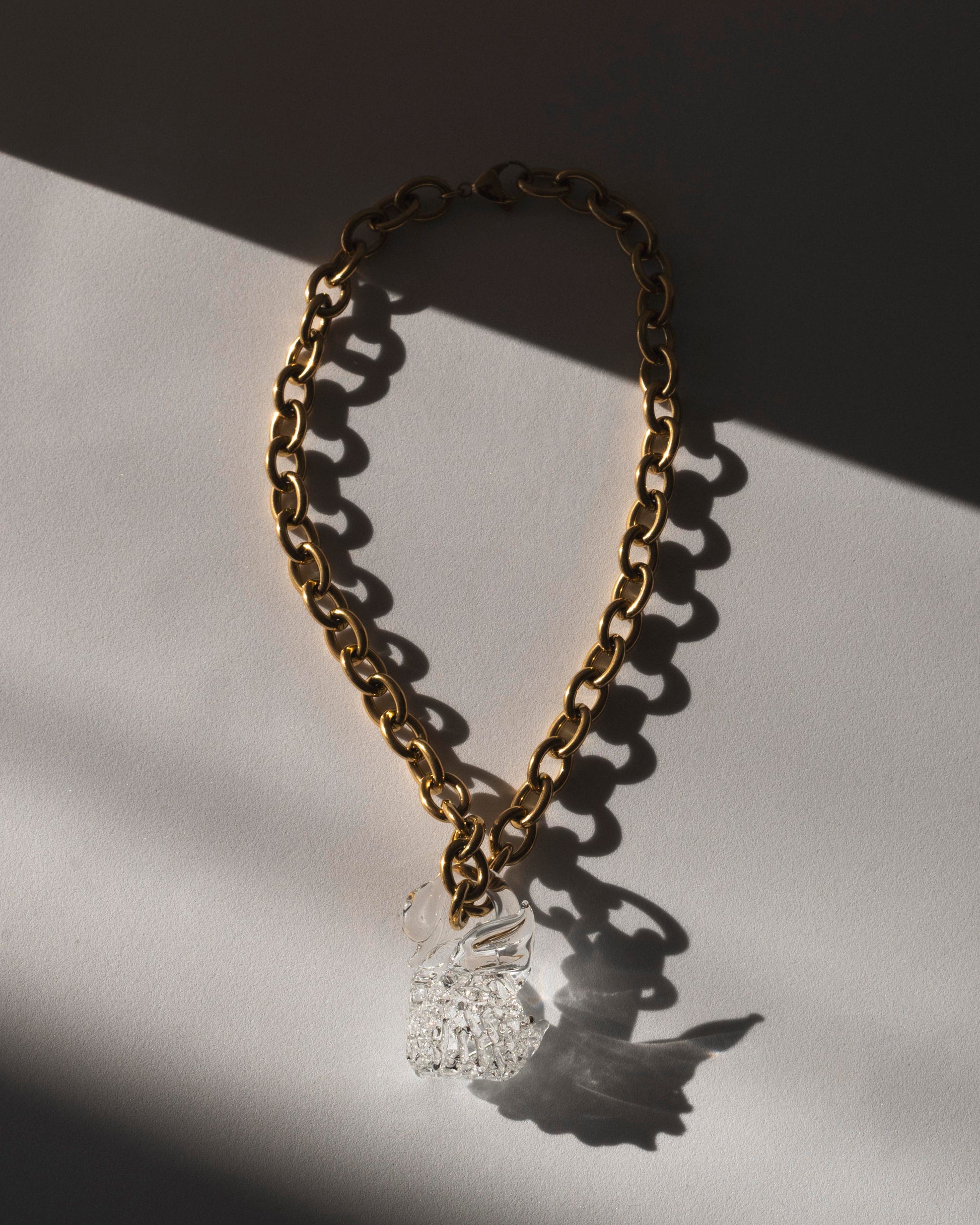 For better conservation, do not spray directly with perfumes or cosmetics that can damage the metal. Do not shower with the piece on and avoid humidity, as exposure to moisture or chemicals may cause tarnishing to occur. When it is not used it is advisable to store it in a closed cloth bag.