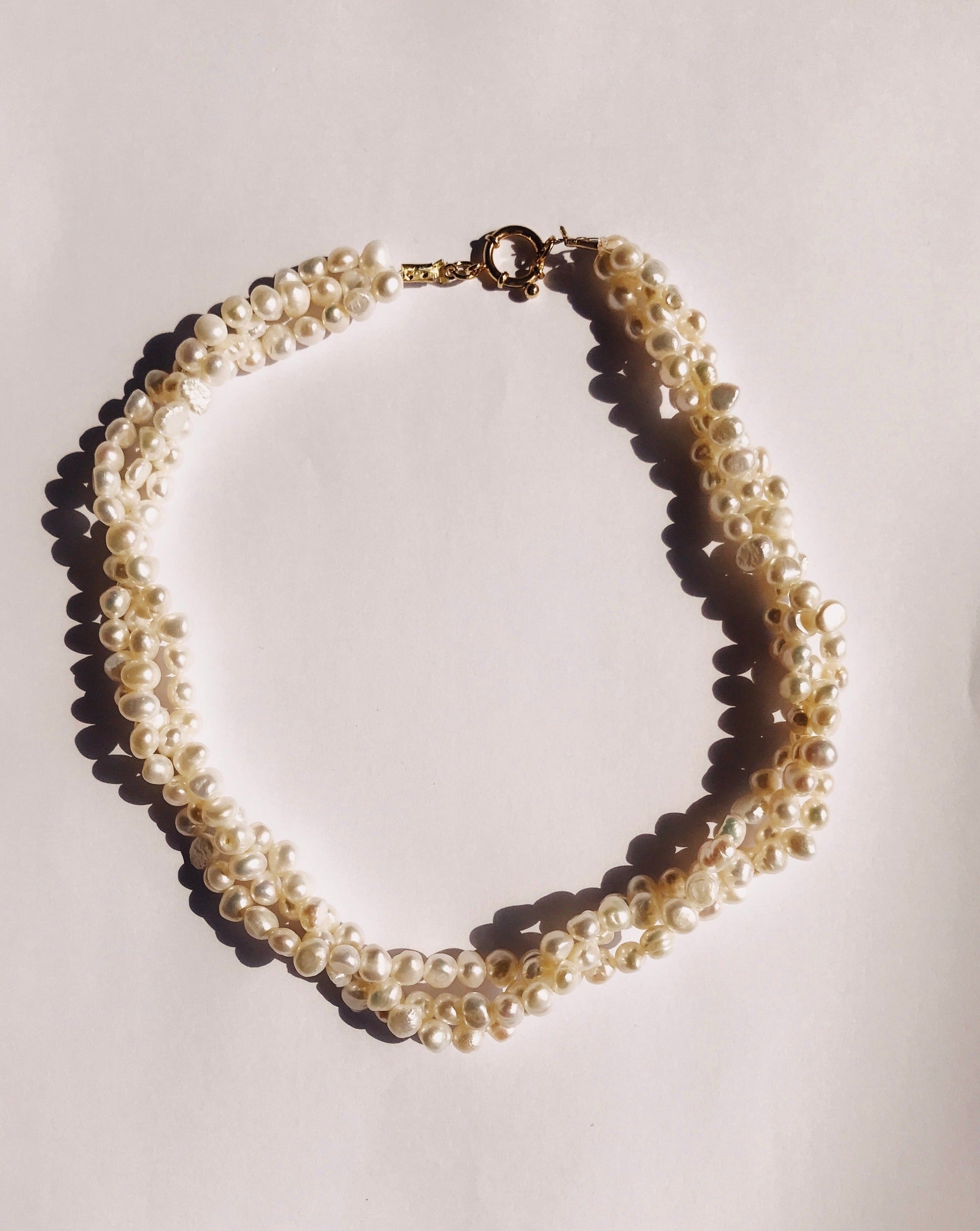 Irregular shaped freshwater pearls - Gold Vermeil 14k details.